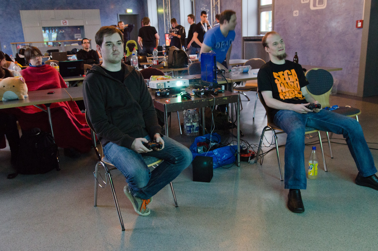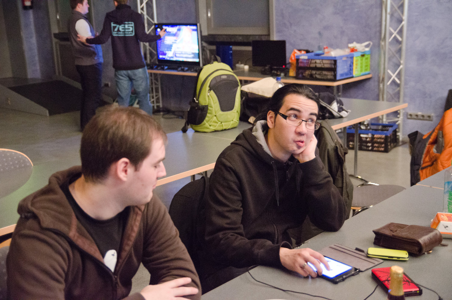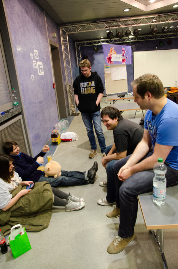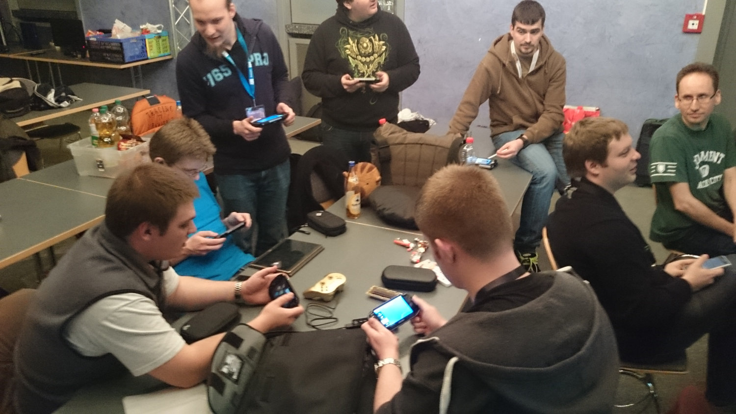 Und es wurde sich viel Unterhalten, in immer wieder wechselnden Gruppenkonstellationen. Ja, da wir auf der Höhe der Zeit sind, zählt das zusammen sitzen und auf Handy/Tablet/Notebook/Handheld schauen natürlich auch als Kommunikationsform! ;) Übrigens dürften sich auf dem Treffen, zum damaligen Zeitpunkt bevor plötzlich überall PS Vitas für knapp 100€ verkauft wurden, wohl mindestens die Hälfte aller in Deutschland existierender PS Vitas befunden haben. Ein bis dahin wohl einmaliges Bild, so viele dieser seltenen Handhelds auf einem Haufen zu sehen!
