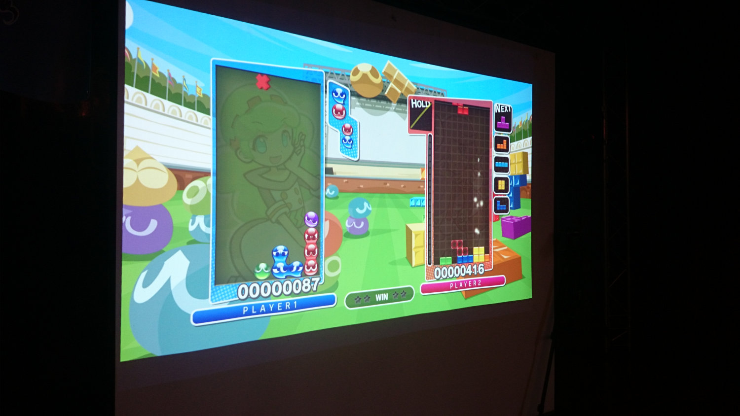 Beim ersten Spiel handelte es sich um Puyo Puyo Tetris, ein tolles Crossover welches auch noch zwei Fliegen mit einer klappe schlug, denn so konnte man die Wünsche nach Puyo pop fever und Tetris gut vereinen.