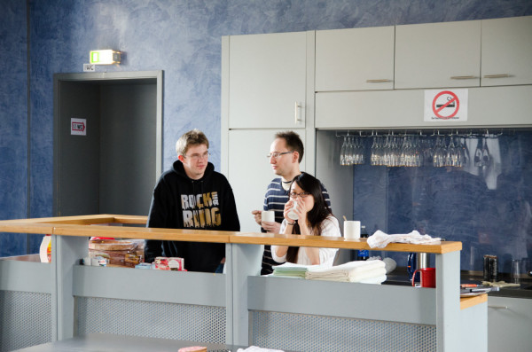 …oder der Bar Ecke mit genug gekühlter Fläche für Getränke und Essen sowie der Möglichkeit abzuwaschen oder sich Tee zu machen. Zudem boten auch dieses mal wieder Eefi und Nebuk die Möglichkeit Mahjong spielen zu können, nur waren leider alle so sehr von den Idols auf der PS3 abgelenkt, so dass daraus dann nichts wurde. Natürlich war auch dann immer noch genug Platz im Saal um sich einfach Unterhalten zu können, schließlich der Grund warum das Treffen ins Leben gerufen wurde!
