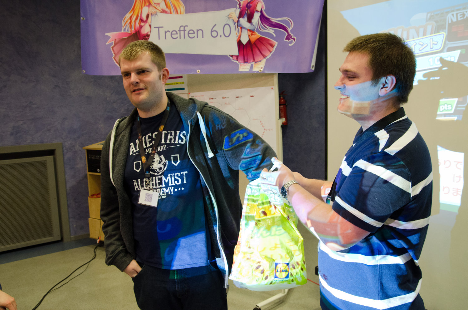 Es gab Massen an japanischen Süßigkeiten zu gewinnen, so gewünscht nach treffen 5.0. Finanziert durch die Umlage und beschafft durch den lieben netten Johannes der an den Kassen in Japan wohl aussah als würde er sich tot fressen wollen. Vielen vielen Dank dafür!