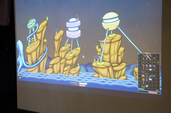 Ich denke mal, man erkennt es sofort, es wurde Worms gespielt, genauer gesagt Worms Armageddon. Auch wieder einer gegen einen im Best of 3. Während das erste Spiel auch sehr schnell ging, haben sich manche Runden jedoch sehr lange hingezogen, so dass das ganze, auch wenn auf 4 Notebooks gleichzeitig gespielt wurde, leider viel länger dauerte als gedacht. Doch nun erst mal ein paar Eindrücke: