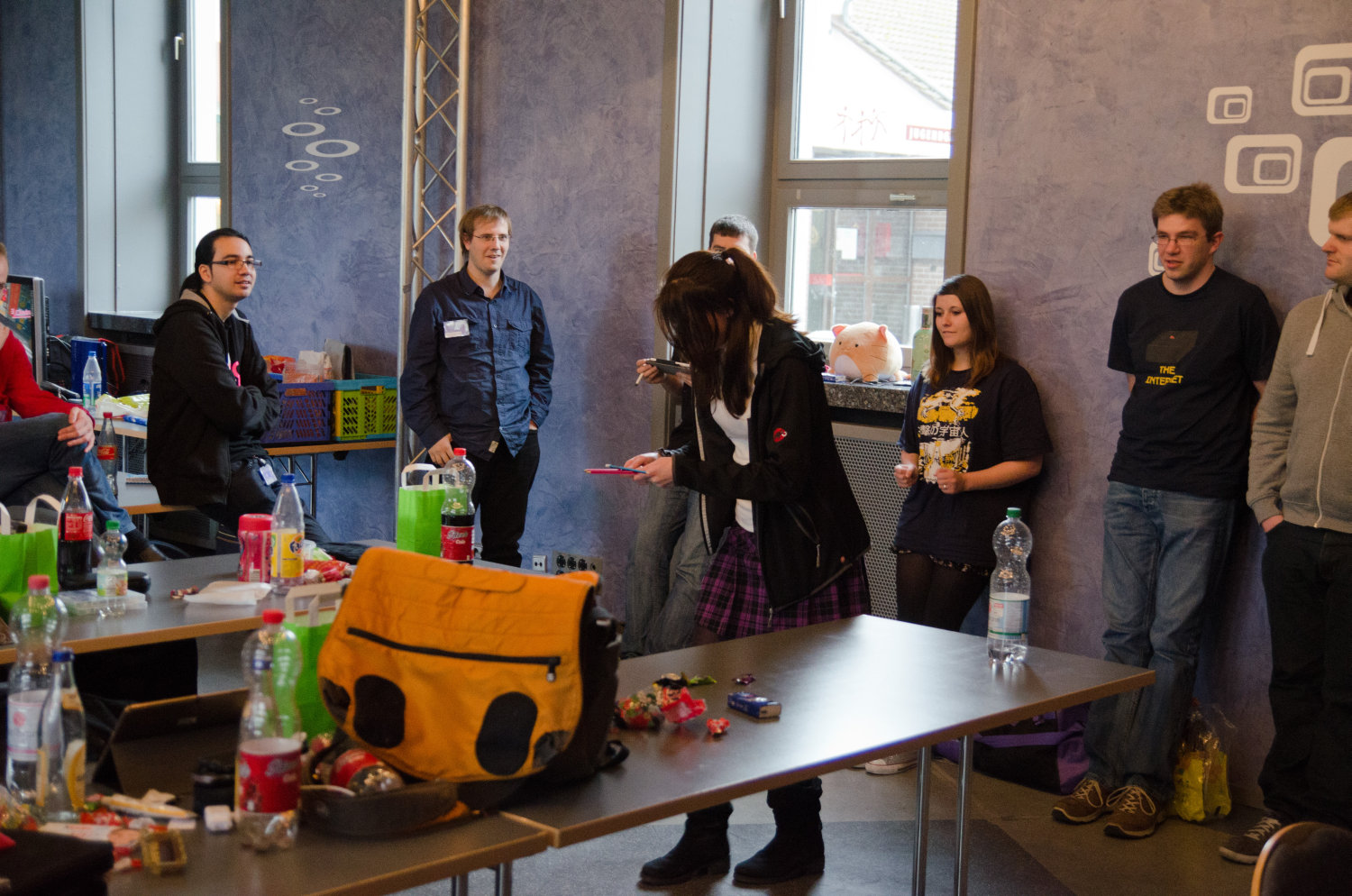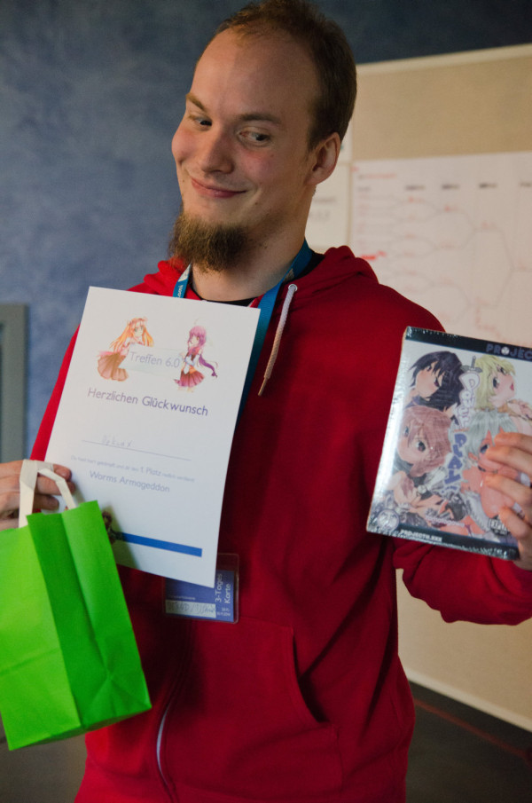 Nach dem großen Essen konnte natürlich nur eines auf dem Plan stehen, das Quiz! Hierfür zeigte sich auch dieses mal wieder TMSIDR verantwortlich mit etwas Unterstützung von mir, da Johannes ja nicht da war. So übernahm ich auch die Technik, weswegen ich eigentlich gar nicht zum fotografieren kam, leider. Es gab wieder 7 Kategorien mit jeweils 8 Fragen, so dass am Ende auch dieses mal wieder 56 Fragen zu beantworten waren. Neben dem Buzzern gab es auch wieder Multiple-Choice Fragen, Fragen zum durchatmen, wo es mal nicht darum geht der schnellste zu sein. Ein wenig neu gestaltete Kategorien, möglichst breit gefächerte Fragen und das ausmerzen von Fehlern in der Technik (auch wenn ich dafür ab und zu versagt habe….), sorgten dafür dass diesmal eigentlich alle sehr zufrieden waren mit dem Quiz, was einem selbst dann natürlich auch freut! Da es so breit gefächert war, waren die Teams dieses mal auch wesentlich näher zusammen und es blieb spannend. Bevor ich zu den Gewinnern komme, natürlich auch hier einen großen Dank an TMSIDR für das Quiz aber auch an Naprecks, der zwar leider nicht da sein konnte aber trotzdem die Buzzer Software angepasst hat und mit neuen Sounds aus GalGun versah ;) Doch welche drei Teams haben es denn nun auf das Siegertreppchen geschafft?